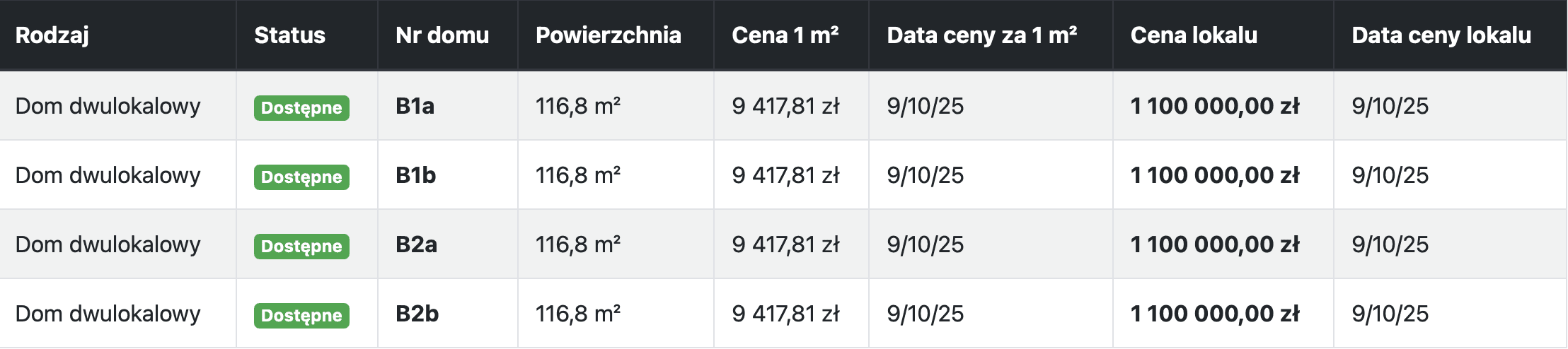 OSIEDLE TULIPANOWA TO ODPOWIEDŹ NA POTRZEBY DUŻYCH RODZIN I TYCH, KTÓRZY CENIĄ PRYWATNOŚĆ. KAŻDE Z MIESZKAŃ W DOMU DWULOKALOWYM TO W PEŁNI SAMODZIELNY DOM Z OSOBNYM WEJŚCIEM, WŁASNĄ DZIAŁKĄ OK. 500 M² I PRZEMYŚLANYM UKŁADEM POMIESZCZEŃ. NA PARTERZE: PRZESTRONNA CZĘŚĆ DZIENNA Z ANEKSEM KUCHENNYM I WC. NA PIĘTRZE: 4 SYPIALNIE I ŁAZIENKA. FUNKCJONALNY, SPOKOJNY I WYGODNY – IDEALNY DO ŻYCIA PRZEZ LATA. DODATKOWYM ATUTEM JEST WYJĄTKOWE SĄSIEDZTWO – LAS DOSŁOWNIE ZA PŁOTEM, A JEDNOCZEŚNIE PEŁNA INFRASTRUKTURA W PROMIENIU 800 METRÓW.